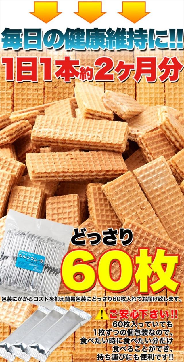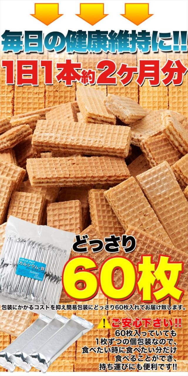 カルシウムバー(ウエハース)60枚!不足しがちなカルシウムをおやつで簡単補給!!/送料無料/常温便
