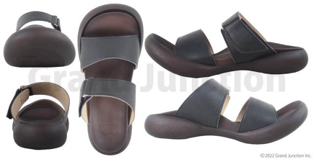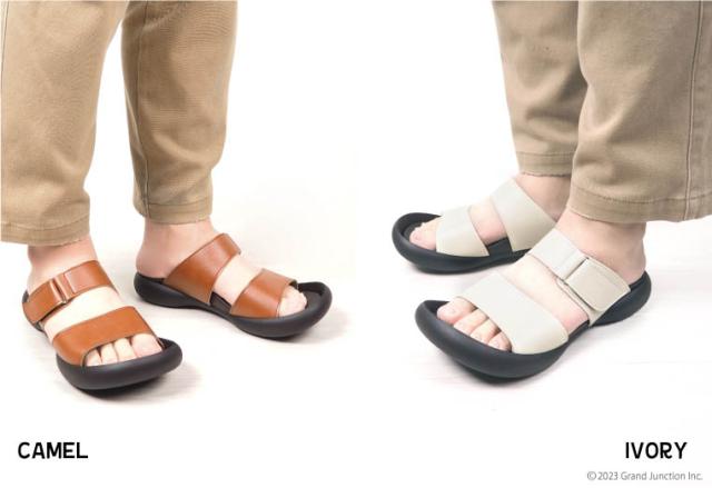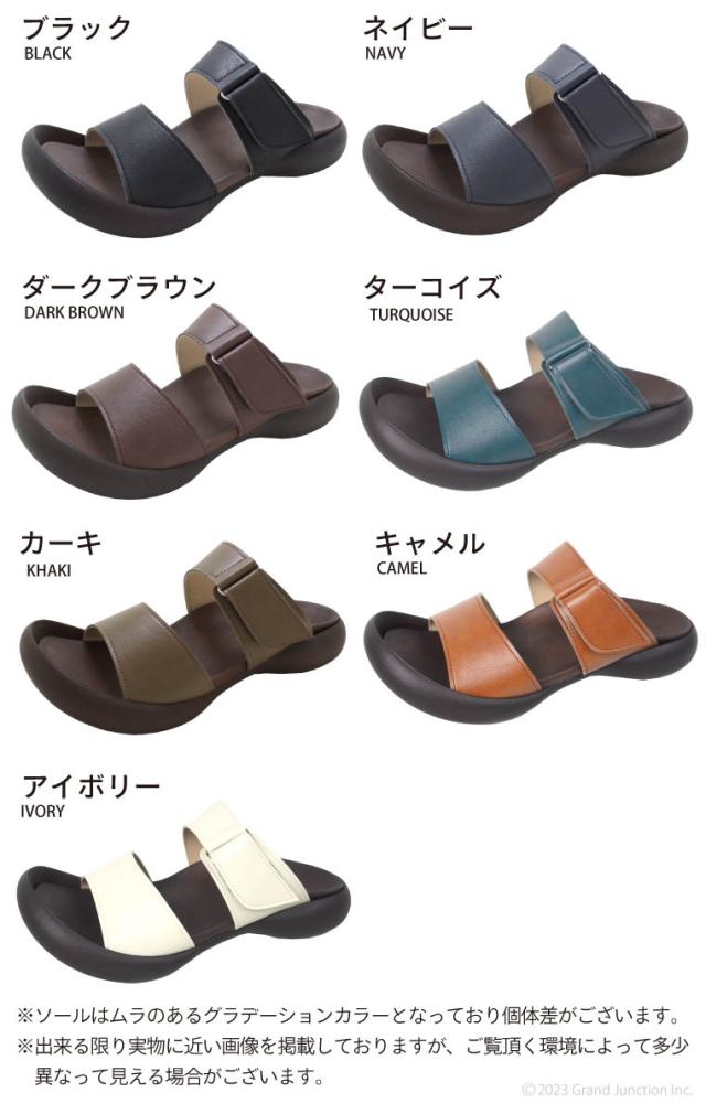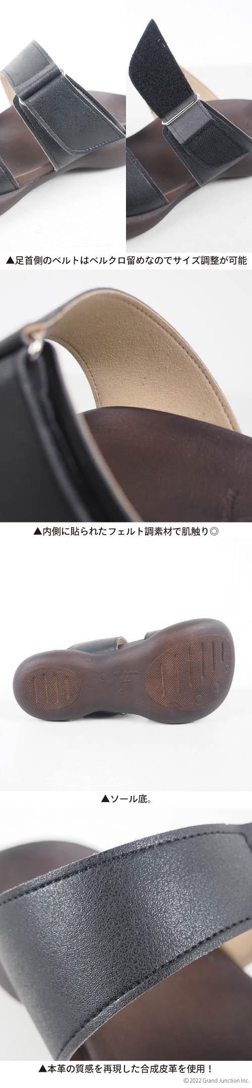 スポッと履けるつっかけタイプだから、ちょっとそこまで…の時に便利!甲側のベルトはマジックテープでサイズ調整が可能なベルクロ仕様。 甲高、幅広な方にも合わせやすいデザインとなっております。オフィス履き、室内履きとしても活用できる一足です。