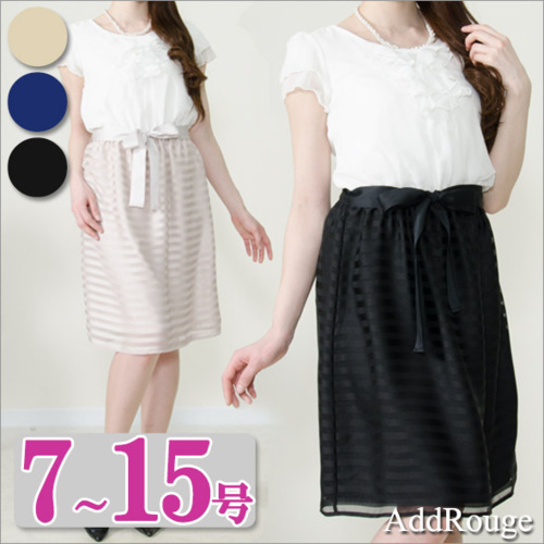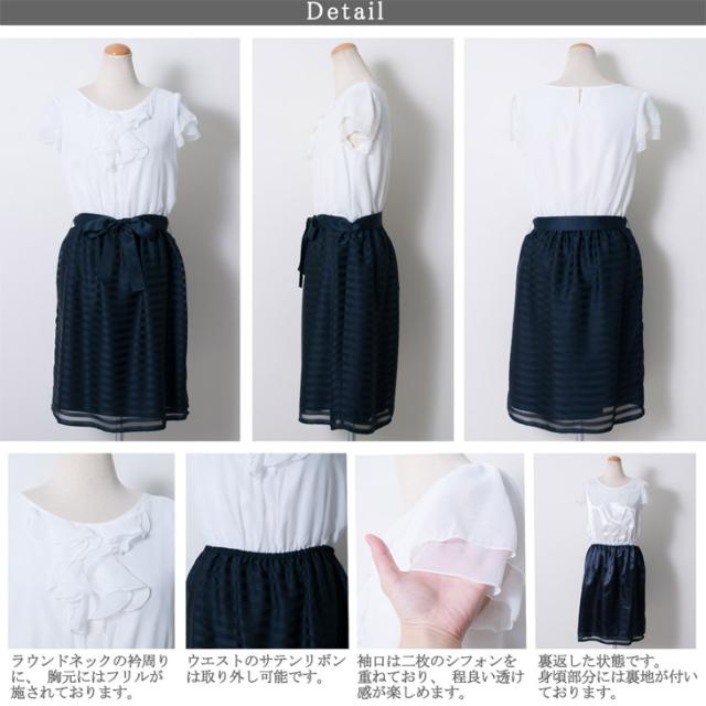 在庫限り 返品交換不可 胸元フリル ウエストリボン ボーダー Aライン シフォン ワンピース[7号/9号/11号/13号/](b2581-562239)