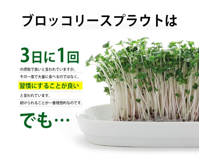 - 免疫力がつくかなって、期待して飲み始めました。生のブロッコリースプラウトを毎日食べるのは大変なので助かります。