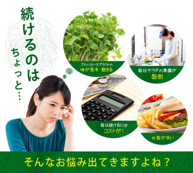 - 食事で取れない分のブロッコリー効果が出るのを期待しています。