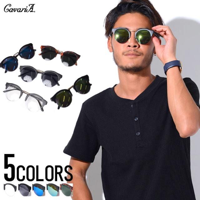 サングラス メガネ メンズ CavariA キャバリア ラウンドサングラス 即日発送 サングラス メンズ 伊達眼鏡 伊達メガネ 黒縁 ミラサン プレゼント ギフト バレンタイン [2054]