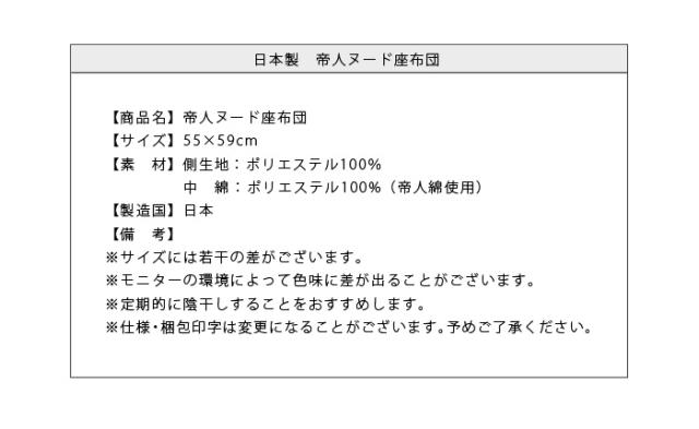 【商品名】日本製 帝人ヌード座布団 55×59 2個セット