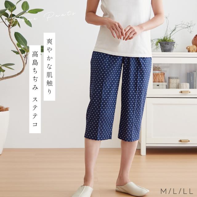高島ちぢみ ステテコ,綿100 ステテコ レディース,ルームパンツ レディース 綿100,ステテコ,高島ちぢみ,日本製,パジャマ,ルームウェア,ホームウェア,部屋着,寝間着,ねまき,リラックスパンツ,ズボン,パンツ,ホームウェア,ルームパンツ,リラパン,部屋着,家着,ひざ下,膝下,綿100%,コットン100%,綿,コットン,100,敏感肌,乾燥肌,肌に優しい,吸汗,通気性,汗,べたつかない,ベタつかない,涼しい,さわやか,爽やか,さらさら,サラサラ,さらっとしている,涼しい,涼しげ,ポケット付き,ポケット,両サイド,左右,無地,シンプル,ネイビー,紺,ターコイズ,ドット柄,水玉,春,夏,春夏,ウエストゴム,総ゴム,ウエスト,ゴム,締め付けない,しめつけない,苦しくない,大人,レディース,女性,お年寄り,高齢者,シニア,ミセス,婦人,おしゃれ,お洒落,オシャレ,かわいい,可愛い,M,L,LL,大きいサイズ,ゆったり,大きめ,