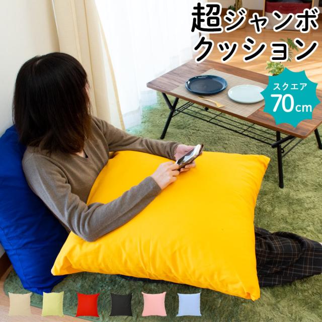 クッション ジャンボクッション XLサイズ スクエア 70×70cm カバー付き 日本製 綿100% ジャンボ 大きい シンプル 無地カラー