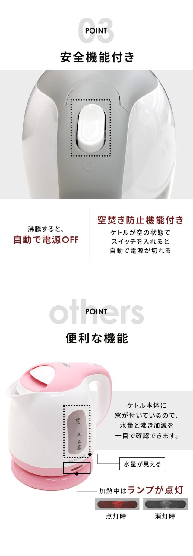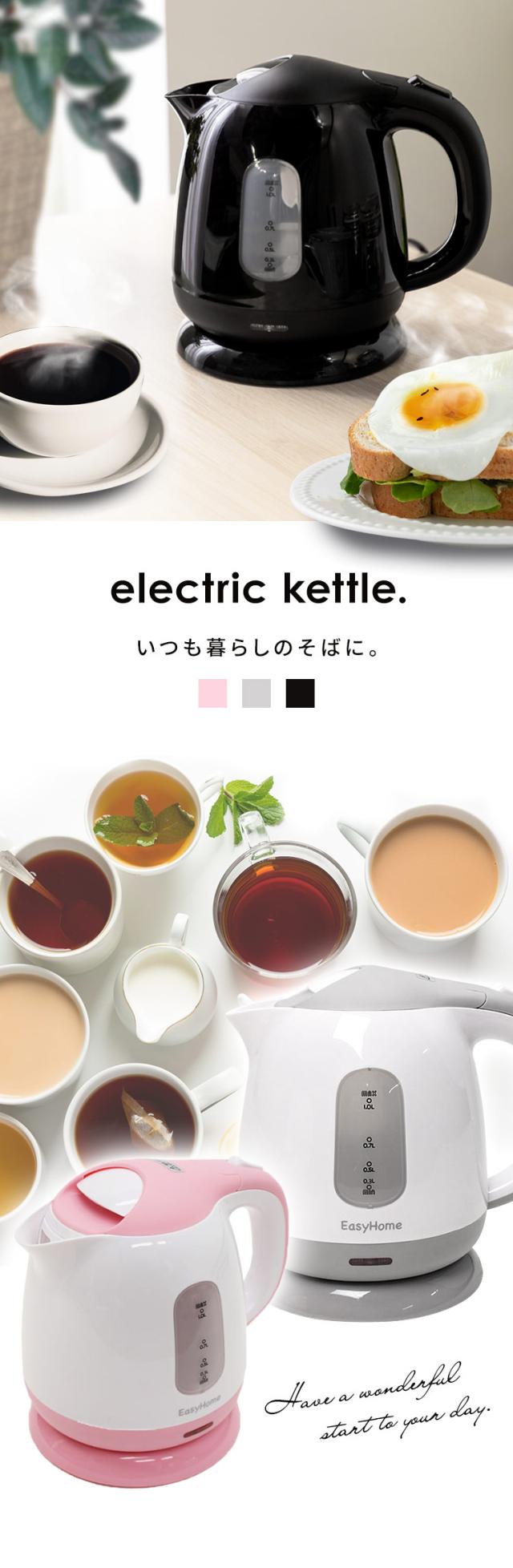 ケトル 電気ケトル KTK-300 HKT-100 コンパクトキッチン 一人暮らし コンパクト 使いやすい シンプル シンプルデザイン ピンク ブラック グレー エコスタイル ケトル カップラーメン コーヒー プラザセレクト