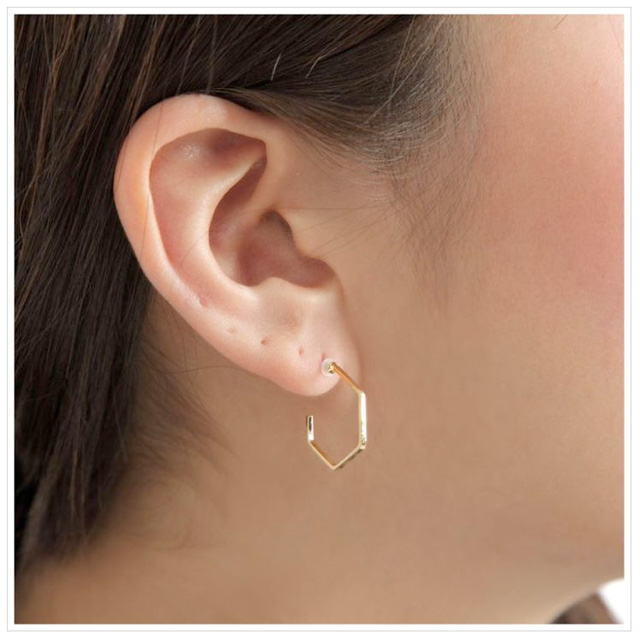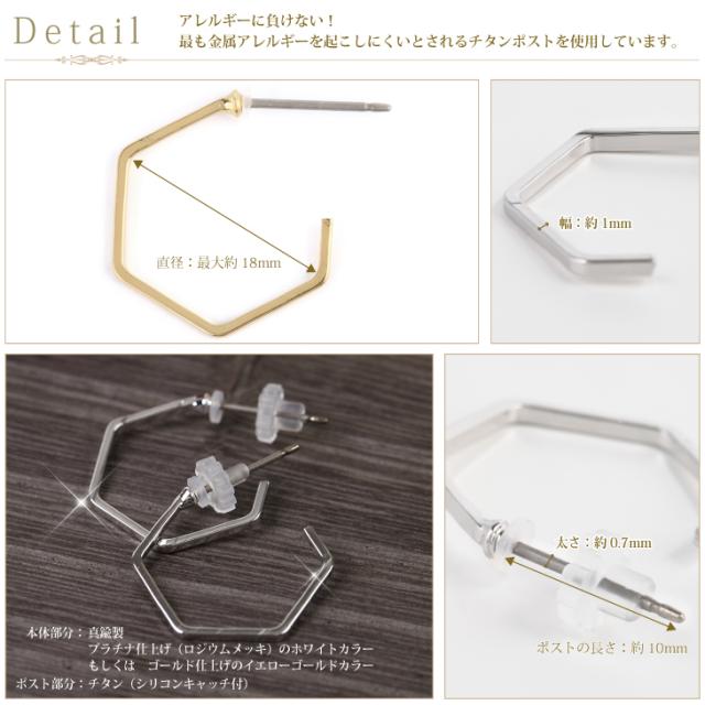 ピアス レディース 金属アレルギー 対応 フープピアス チタンポスト チタン アレルギー フープ 変形フープ 六角形 ヘキサゴン ゴールド 両耳 ブランド 20代 30代 40代 50代 60代 彼女 妻 誕生日 クリスマス プレゼント 女性 アクセサリー