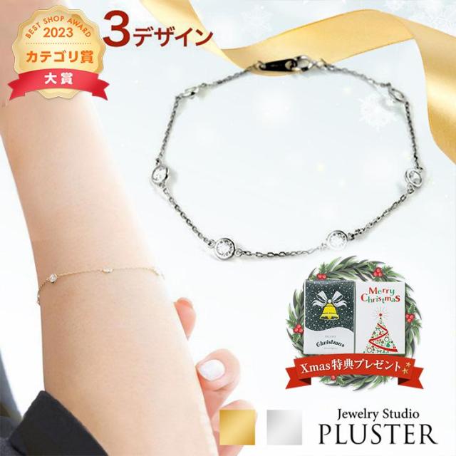ブレスレット レディース ステーション スマイルライン H&C ジルコニア 金属アレルギー対応 華奢 キュービックジルコニア CZ シルバー ゴールド プラチナ アレルギーフリー 誕生日 ギフト クリスマス プレゼント 女性 彼女 アクセサリー 送料無料 特典