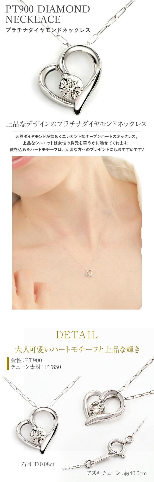 ダイヤモンド ネックレス レディース ダイヤモンドネックレス ハートネックレス オープンハート プラチナ PT900 ダイヤ ダイヤネックレス 華奢 金属アレルギー 彼女 妻 誕生日 クリスマス プレゼント 女性 ギフト アクセサリー