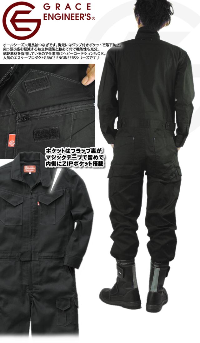 ツナギ 長袖 オールシーズン ジャンプスーツ グレースエンジニアーズ GRACE ENGINEERS つなぎ ツヅキ服 作業服 作業着 通年用 GE-627