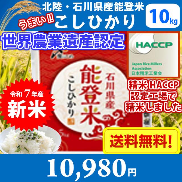 お一人様1個まで【令和7年産 新米】【精米】世界農業遺産 北陸・石川県能登米こしひかり(日本海)10kg 送料無料!!(北海道は別途700円かかります。 沖縄配送不可。