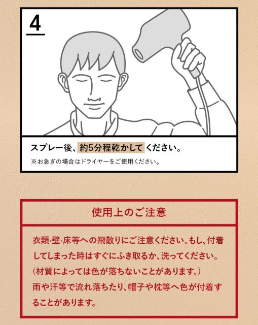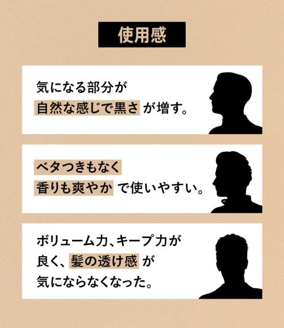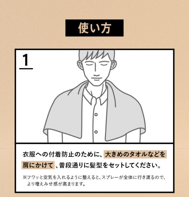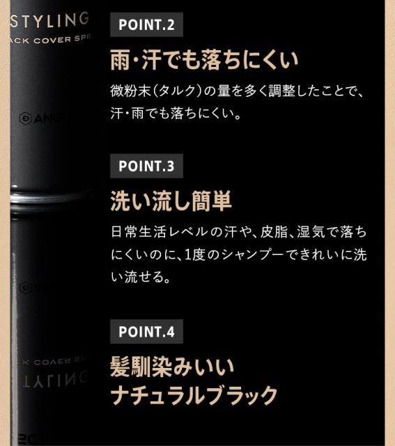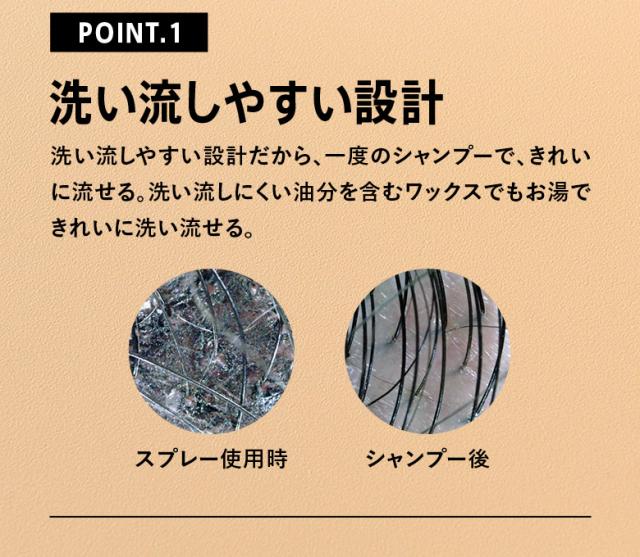 スタイリングした髪をキープしつつ、1本1本を黒く太く見せる、汗・雨でも落ちにくいスプレー。