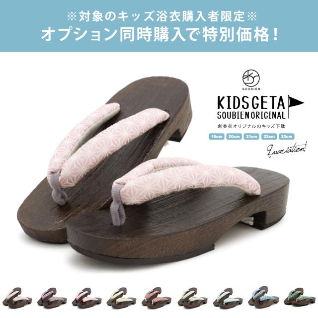 対象のキッズ浴衣を同時にご購入いただいたお客様のみ、こちらの下駄を特別価格でお買い上げいただけます。