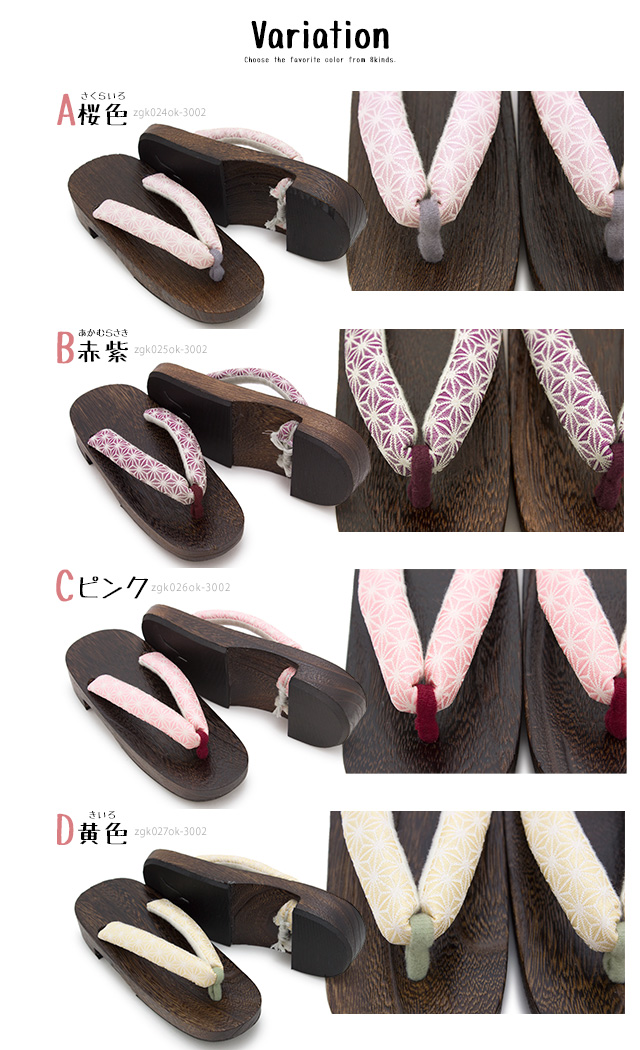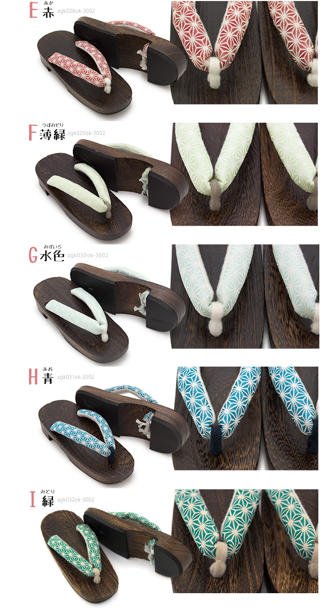 鼻緒は、レトロな雰囲気で着物に合わせやすい、麻の葉文様が施されています。