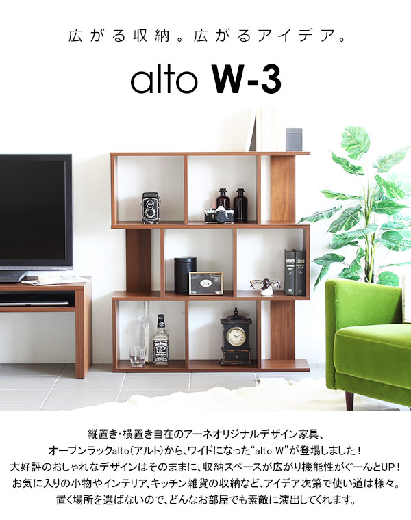 オープンラック 木製 リビング ディスプレイラック おしゃれ 3段 本棚 完成品 北欧 薄型 ラック arne alto W-3 ☆