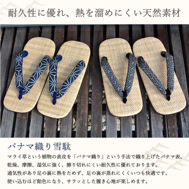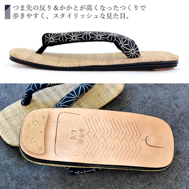 ■素材:[台]パルプ(パナマ織り)、[鼻緒]印伝/ハイミロン、藍染/綿、[底]牛革