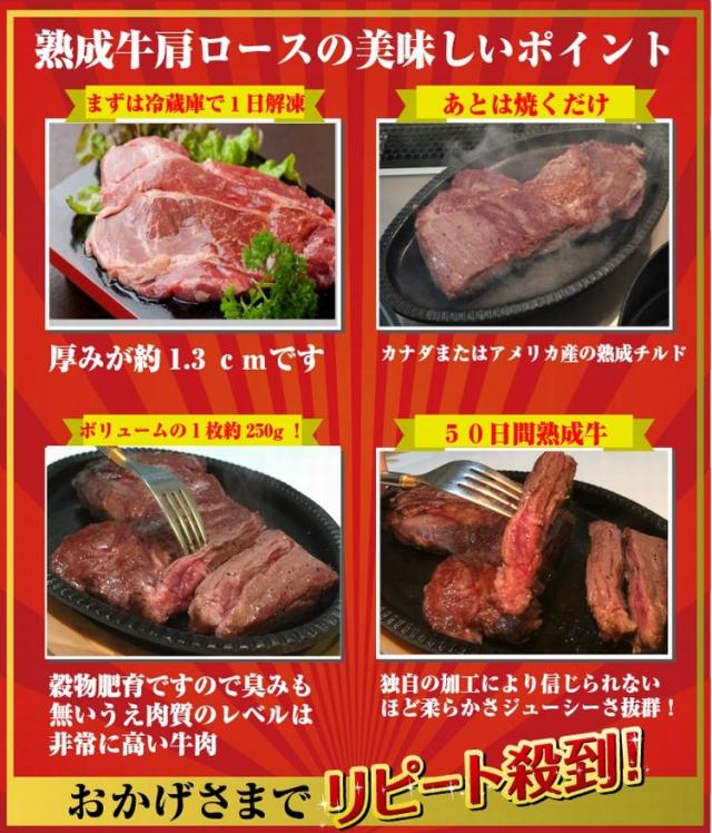 成牛!穀物肥育牛・肩ロースステーキ250g厚み約1.3cm×(4枚)1キロ/ロースステーキ/ステーキ/冷凍A pre