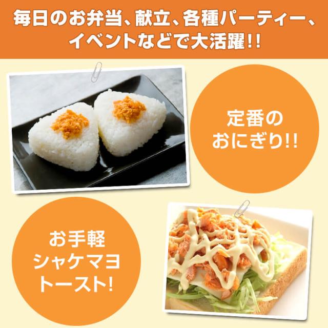 - 鮭のフレーク思ったより細かかったが、おにぎりの具にしたらちょうどよかった。塩分も控えめでよかった。量がたっぷりあるので開封後小分けして冷凍しました。