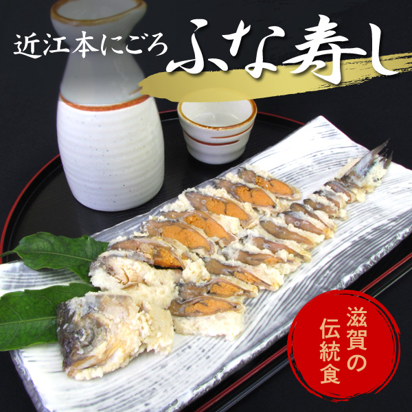 びわ湖の希少種ニゴロブナを湖の水を使い3年かけて自然環境を活かし、自社生産しています。薬剤や人工飼料は使用せず、選りすぐりの原材料で安心安全な本物の味のふなずしを漬けこんでいます。全て手作業で昔ながらの製造方法で、よけいな添加物は一切使用していません。原材料にこだわることにより、匂いの少なくニゴロブナ本来の旨味を味わっていただける、滋賀県ならではの自然発酵の伝統食です。昔から滋養効果もあるといわれています。日本酒はもちろん、ワインにも合い、チーズのような感覚でお召し上がりください。また、アンチョビのようにオリーブ油や黒胡椒とも相性がよく、パスタやカナッペなどにもご活用いただけるアクセントのある珍味です。原材料ニゴロブナを自社生産。本物の滋賀の伝統食を継承。多くのマスコミに紹介されています。(キッチンが走る!、モーニングバード!、うまいっ!etc.)
