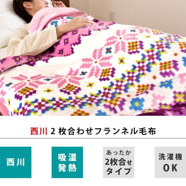 毛布 シングル セット 2枚合わせ 2枚組 西川 フランネル あったか 冬 衿付き 140×200cm 軽量 吸湿発熱 やわらか クリスマス ギフト 暖か 【shiki-kett25】