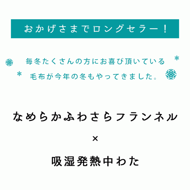 - 急に寒くなったので、注文した次の日に発送して頂き助かりました。 少し薄い感じですが、とても暖かいです。 何より肌触りが気持ち良いので子供達も喜んでいます。
