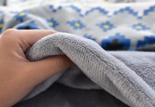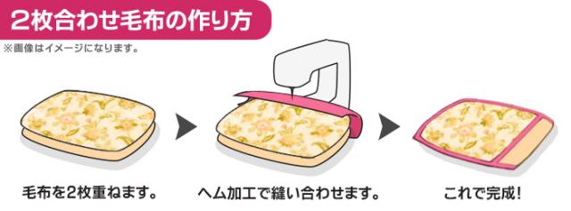 毛布の生地を2枚合わせて縫製して作った2枚合わせ毛布。