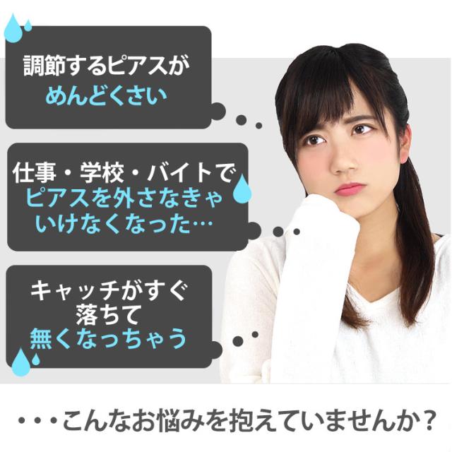 - キャッチがボールよりも小さいので、仕事中に目立たずにとで良かったです。ただ、洗髪時や髪に引っかかってキャッチが取れたりしてなくなることがあったので、このサイズでネジ式になると凄く嬉しいです!
