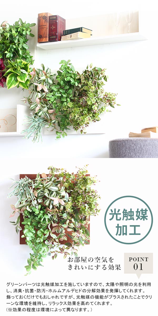 人工観葉植物 光触媒 おしゃれ 壁掛け パネル 除菌 消臭 リアル フェイクグリーン Botanical a.class 15 》