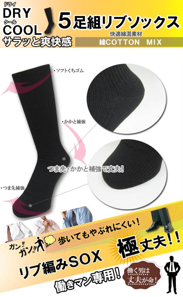 靴下 メンズ 黒 セット ビジネス ソックス 5足組 送料無料 24-26cm 25-27cm 26-28cm 白 黒 紺 ネイビー グレー リブ編み 紳士靴下 メンズ靴下 まとめ買い ムレない靴下 ソックスメンズ くつした (00124)