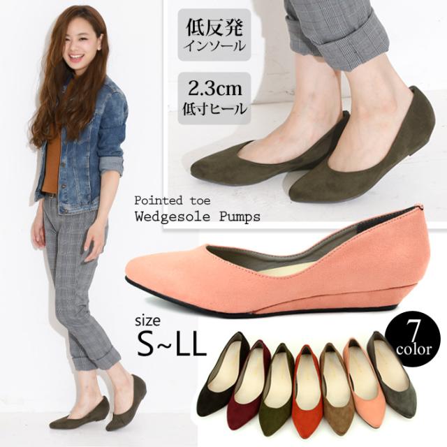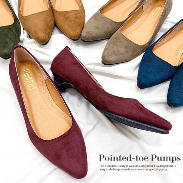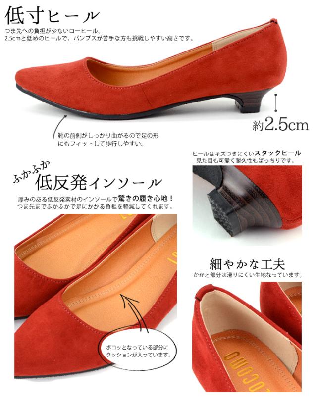アウトレット パンプス ローヒール スエード 低反発 2.5cm ポインテッドトゥ スエードパンプス (kh-1410)【沖縄県除き送料無料】 レディース フラット 大きいサイズ シューズ 柔らかい 疲れない 痛くない おしゃれ 女性 オフィス フォーマル 冠婚葬祭 黒 ブラック agesugi_sfa