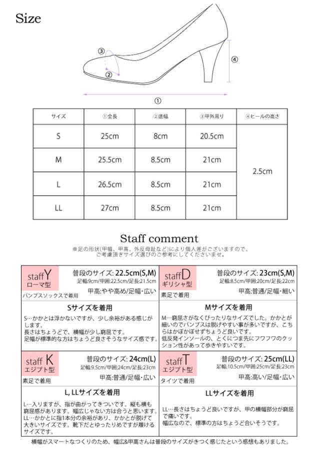 | 上質な人工スエードを使用したパンプス。 デイリーで履きやすい2.5cmヒールが魅力! パンプスが苦手な方も挑戦しやすい高さです。 甲の部分が浅めのつくりで足がすっきり見えます。 さらにスマートなポインテッドトゥでローヒールでもキレイスタイルに♪ ヒールはキズがつきにくいスタックヒールです。 ★モデル:靴サイズ23cm(Mサイズ着用) ■サイズ※カッコ内のサイズは目安となります。 S(22.0〜22.5cm) M(23.0〜23.5cm) L(24.0〜24.5cm) LL(24.5〜25.0cm) ■ポインテッドトゥの為、細身のつくりとなっております。 当店スタッフの試着感想や、お客様からいただきましたレビューをご参考ください。 ■ヒール:(約)2.5cm ■素材:人工スエード ■生産国:ベトナム <お客様へ> こちらの商品は靴箱が付属しております。 輸送中における靴箱のダメージは保証の範囲外となりますのでご了承くださいませ。 <商品カラーについて> モデル着用写真は屋内外での撮影の為、光の影響で実際のカラーとは異なる場合がございます。 カラーバリエーションの画像が実物に最も近いお色味です。そちらをご参考ください。 ※アウトレット品につき、返品交換の対象外となりますので予めご了承下さいませ。[2003] |