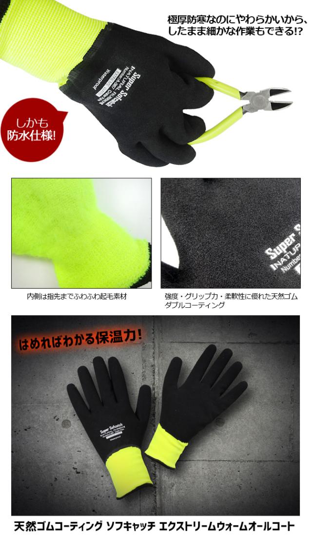 1点までネコポス可 極厚防寒 作業手袋 ソフキャッチエクストリームウォームコート ラバーコート 1双 A-367 ゴム手袋 軍手 バイクグローブ