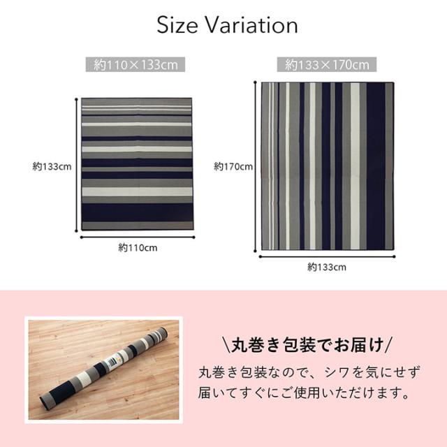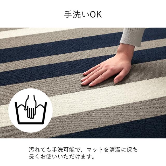 ■デザインもシンプルなボーダー柄で使いやすく、大人のテレワーク用デスクの下にも敷けます。