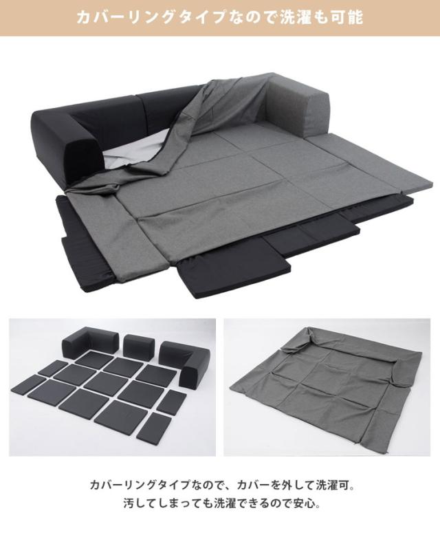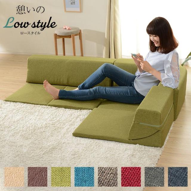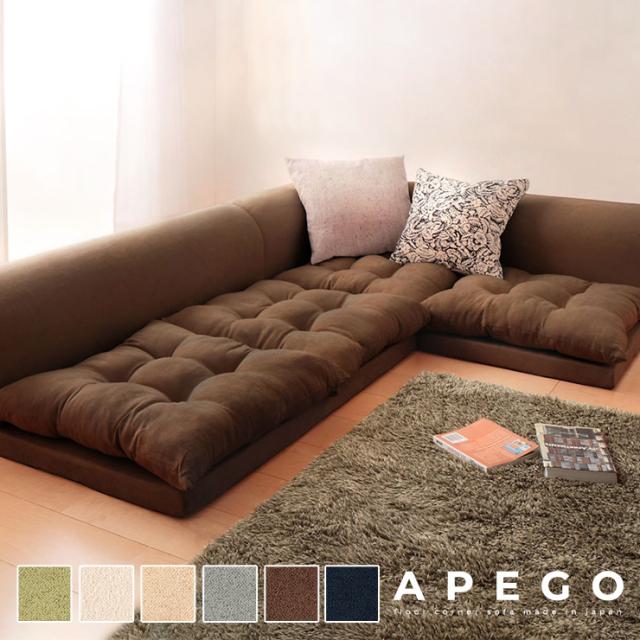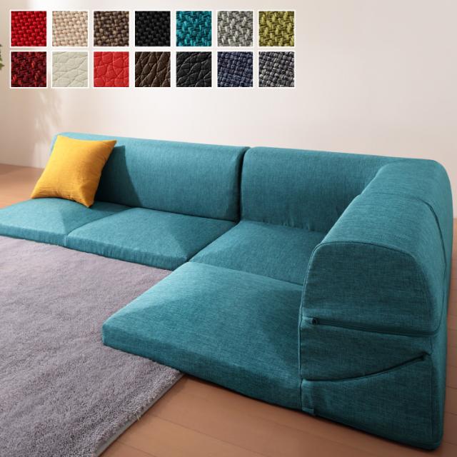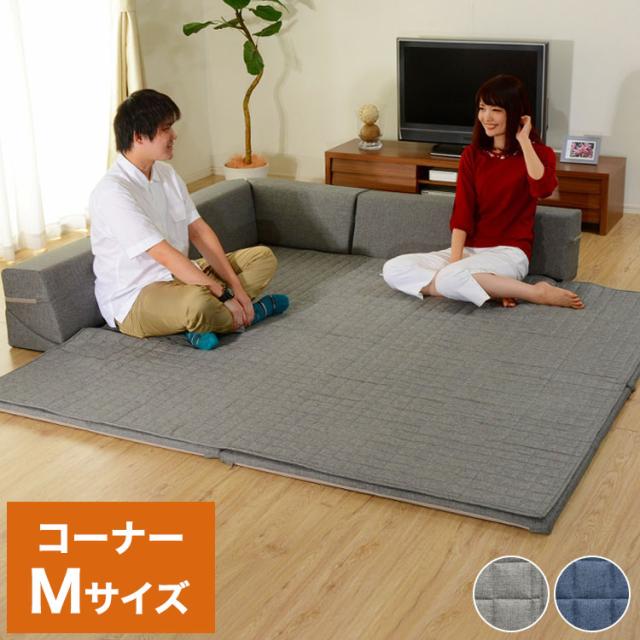 フロアマット付きソファー Mサイズ コーナーソファー 日本製 ロータイプ フロアマット ローソファ コーナー ソファーマットレス ソファーベッド リビング ローソファー カウチ カバーリングソファ(代引不可)【送料無料】