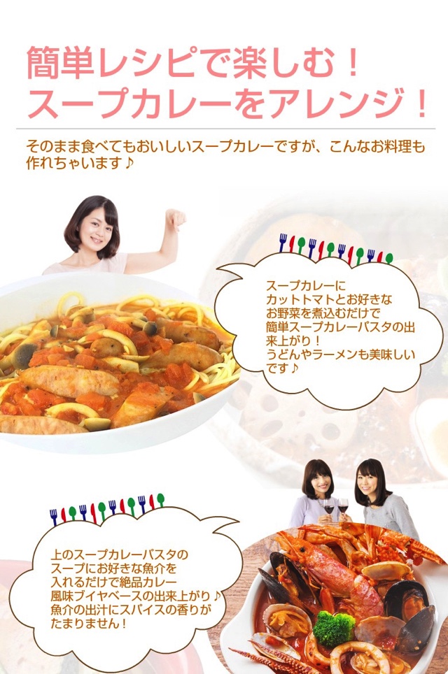 - スパイスがピリリときいた、本格的なスープカレーてす。野菜を加えて召し上がれ。いちだんと美味しくなります!