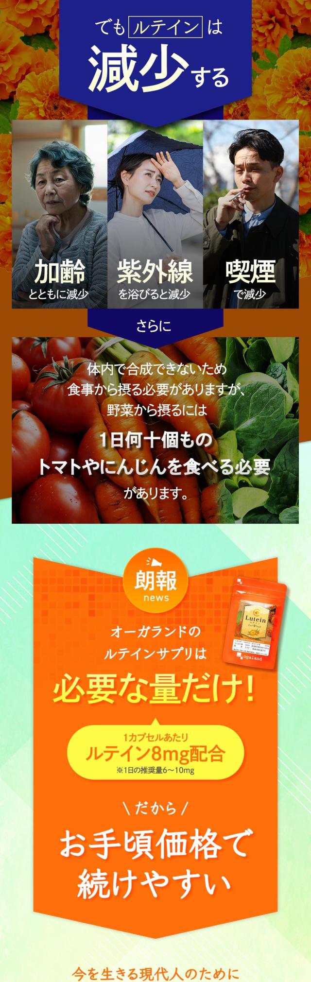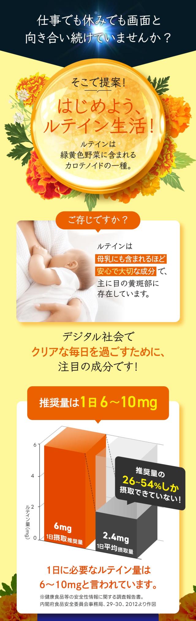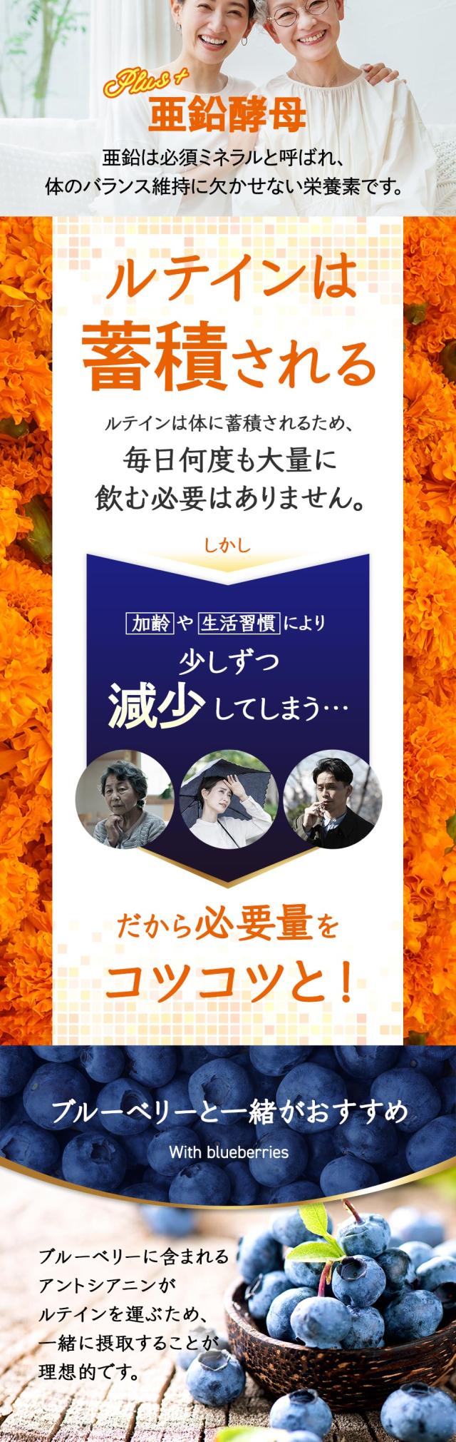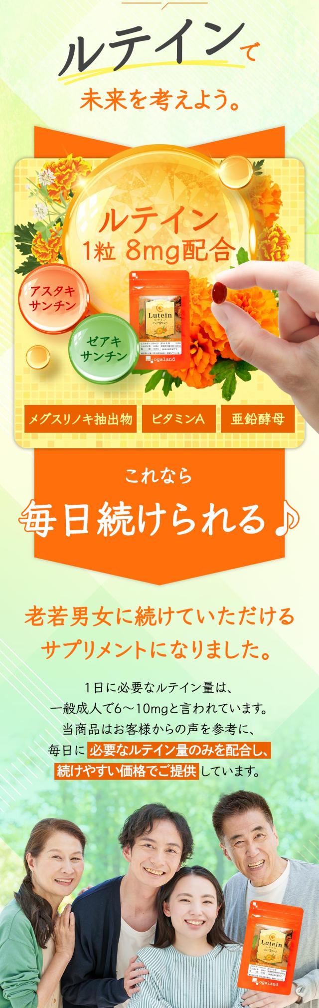主要原料(1粒あたり):マリーゴールド色素製剤 40mg(フリールテインとして8mg)