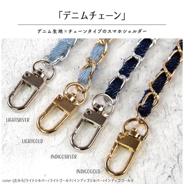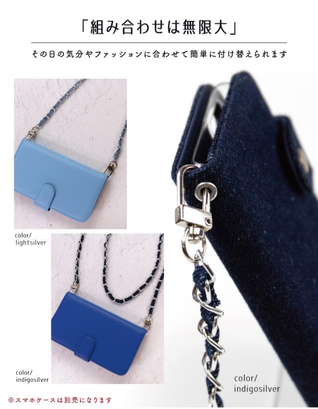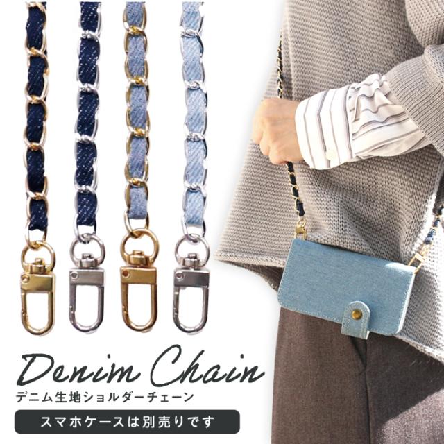 スマホ ストラップ デニム チェーン ショルダー 斜めがけ 手帳型 ショルダーストラップ バッグ用