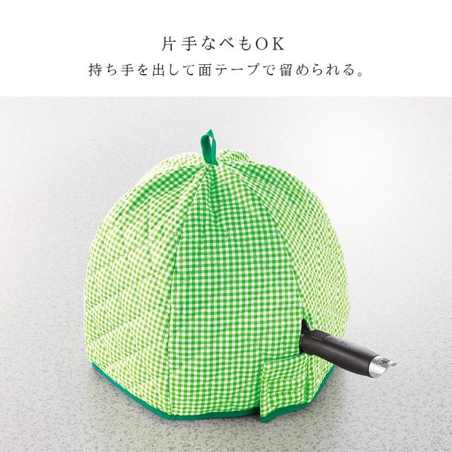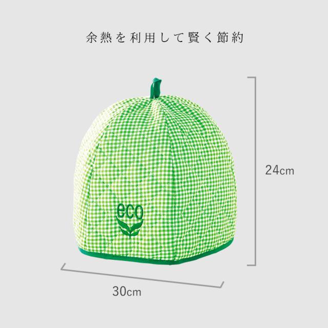 見た目もカラーも可愛い、ギンガムチェックの保温カバー『エコ保温ドーム』をかぶせるだけで余熱で調理することができ、光熱費の節約になります。