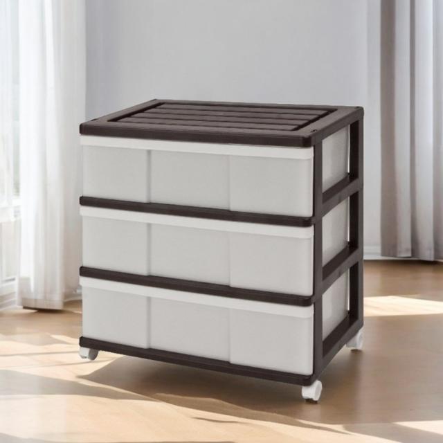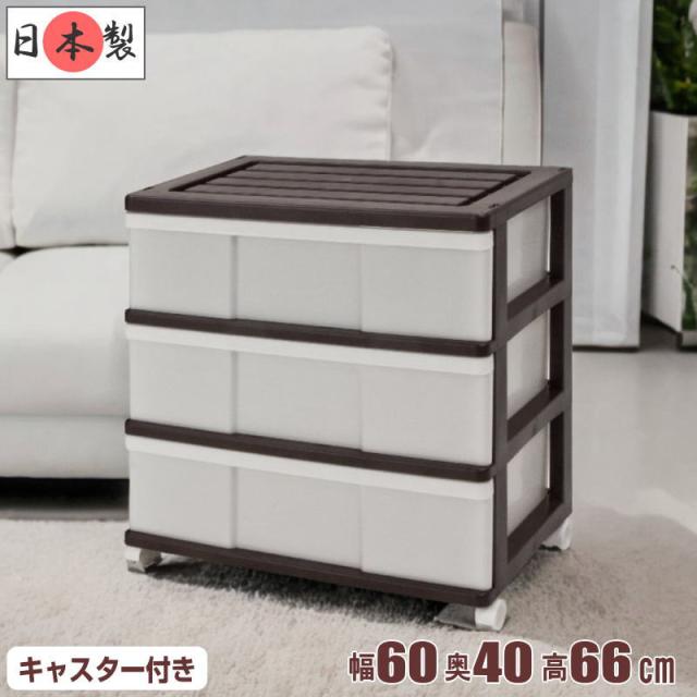 収納ボックス 収納ケース 衣類 押入れ 引き出し ワイド カラフルチェスト プラスチック 3段 幅60cm おしゃれ ブラウン 日本製 送料無料