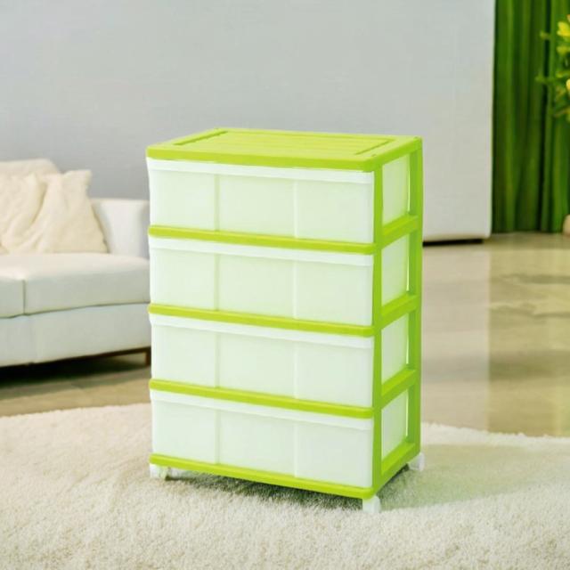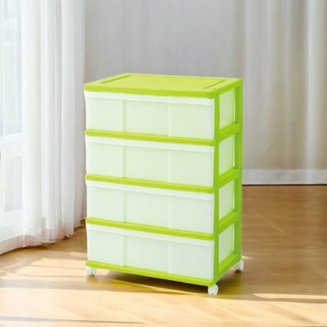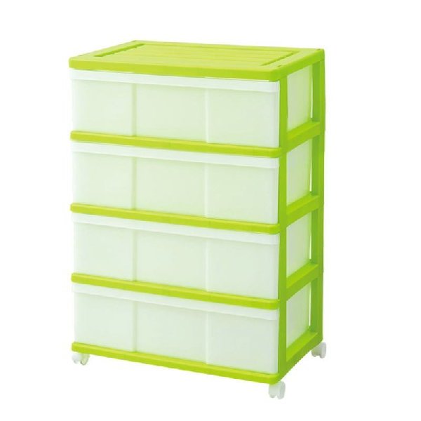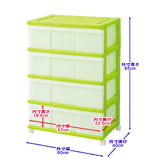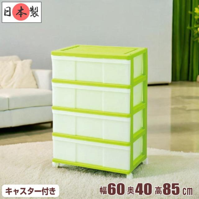 収納ケース 引き出し ワイド カラフルチェスト プラスチック 4段 幅60cm おしゃれ グリーン キャスター付 日本製 送料無料