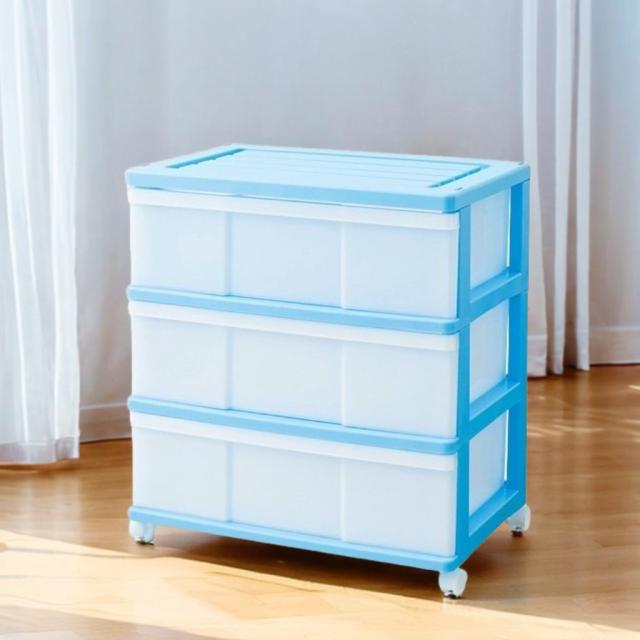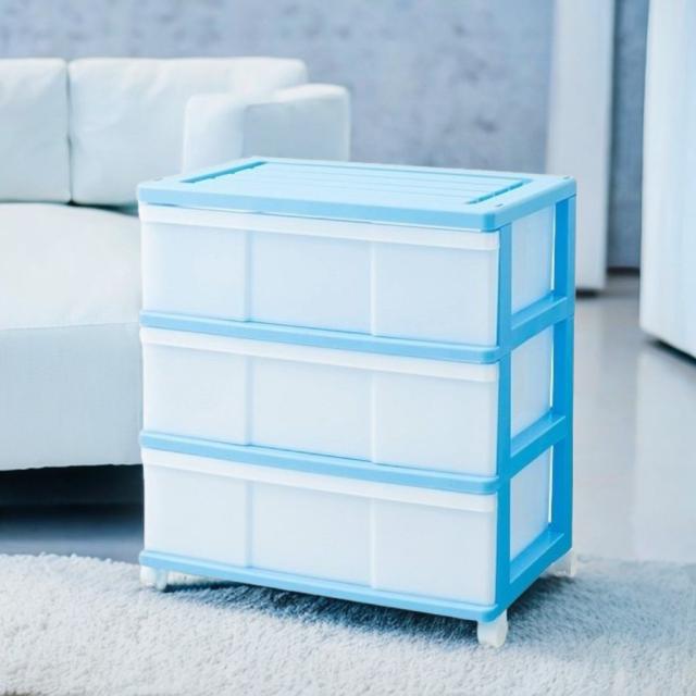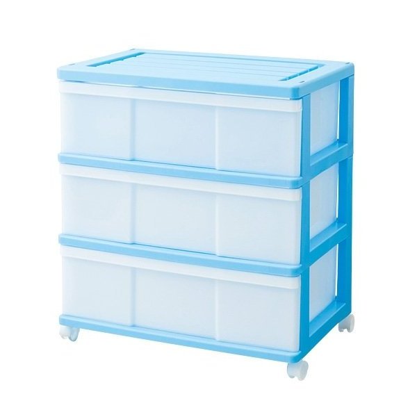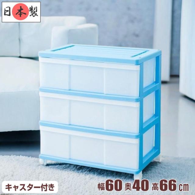 収納ケース 引き出し ワイド カラフルチェスト プラスチック 3段 幅60cm おしゃれ ブルー キャスター付き 日本製 送料無料