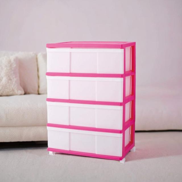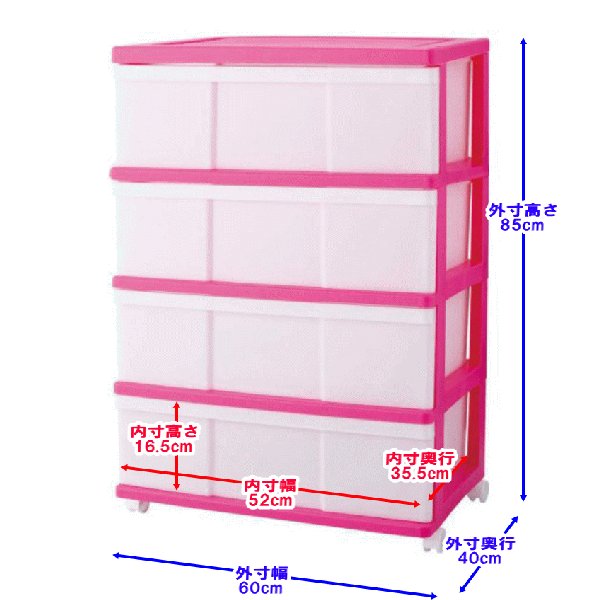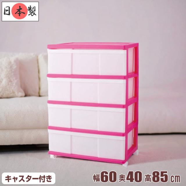 収納ボックス 収納ケース 衣類 押入れ 引き出し ワイド カラフルチェスト プラスチック 4段 幅60cm おしゃれ ピンク 日本製 送料無料