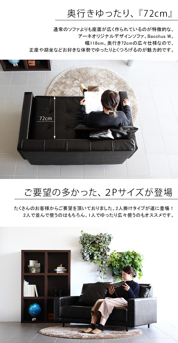ソファ 2人掛け 合皮 レザー モダン 日本製 ワイドソファレザー おしゃれ ローソファ リビングソファ Bacchus W 2P □
