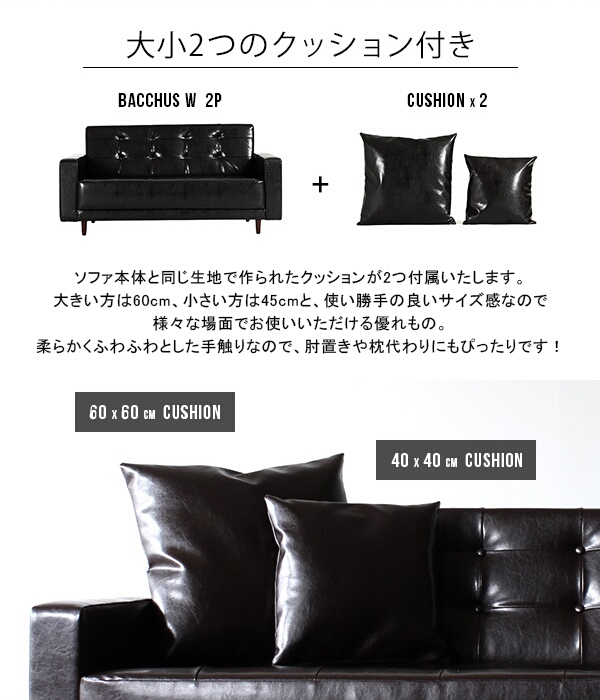 同色クッション2個付属(60cmクッション1個、45cmクッション1個)