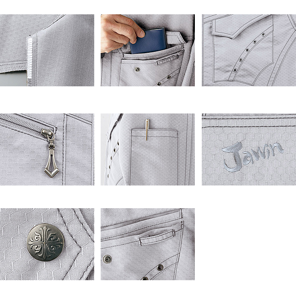 新素材のハニカムリップストップや左胸ポケットの5連アイレットが特徴。