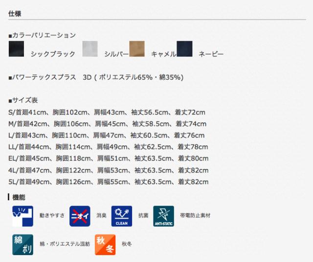 4L/首廻47cm、胸囲122cm、肩幅53cm、袖丈63.5cm、着丈82cm