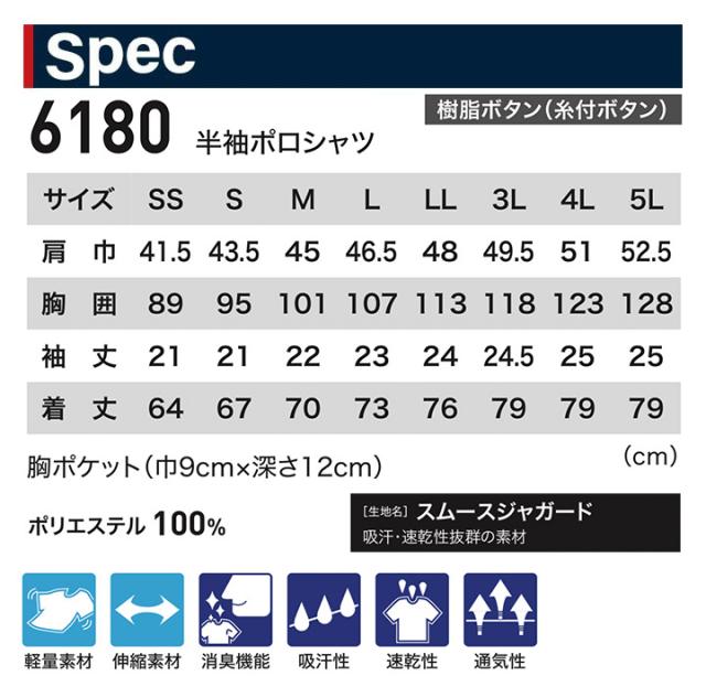 ジーベック 半袖ポロシャツ 6180シリーズ【6180】【秋冬】作業服 作業着 XEBEC