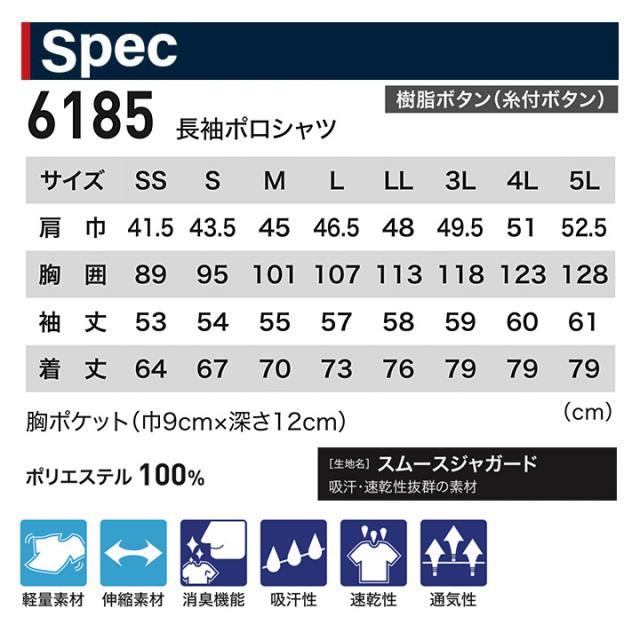 ジーベック 長袖ポロシャツ 6185シリーズ【6185】【秋冬】作業服 作業着 XEBEC
