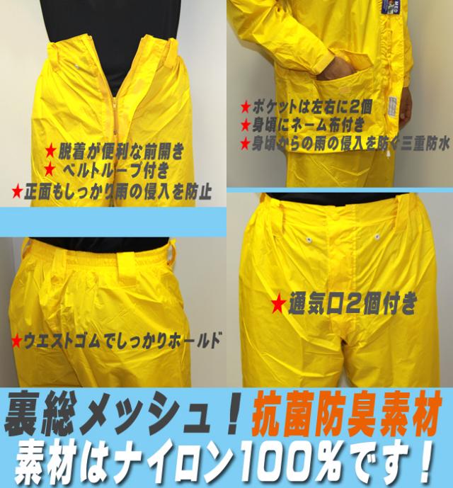 ■本製品に使用されている素材の特徴はズバリナイロン100%PVCラミネートコーティングです!雨や風を防ぐタフな合羽です!抗菌防臭裏総メッシュ仕上げ!スポーツや釣りなどのアクティブシーンでも大活躍!非常にタフで安い!動きやすい合羽です。