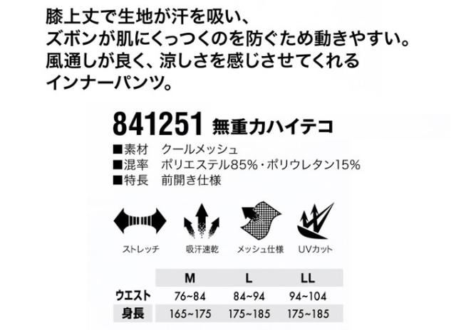TSデザイン 藤和 TS-DESIGN 841251 無重力ハイテコ ハーフパンツ メッシュ ステテコ インナーパンツ【送料無料】コンプレッション【即日発送】
